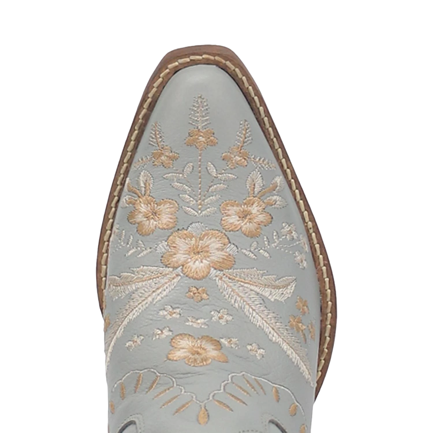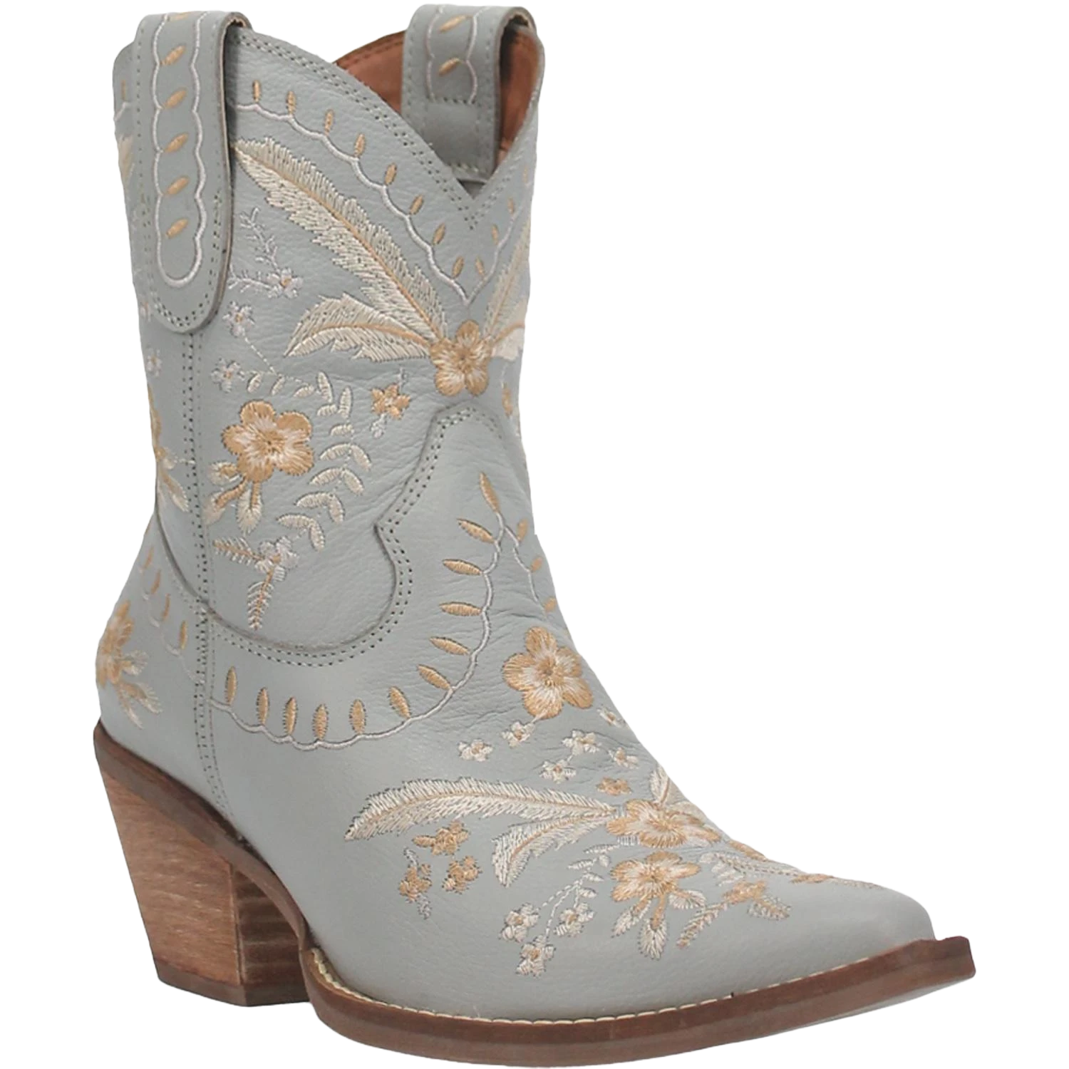 - Light blue full grain leather western bootie.