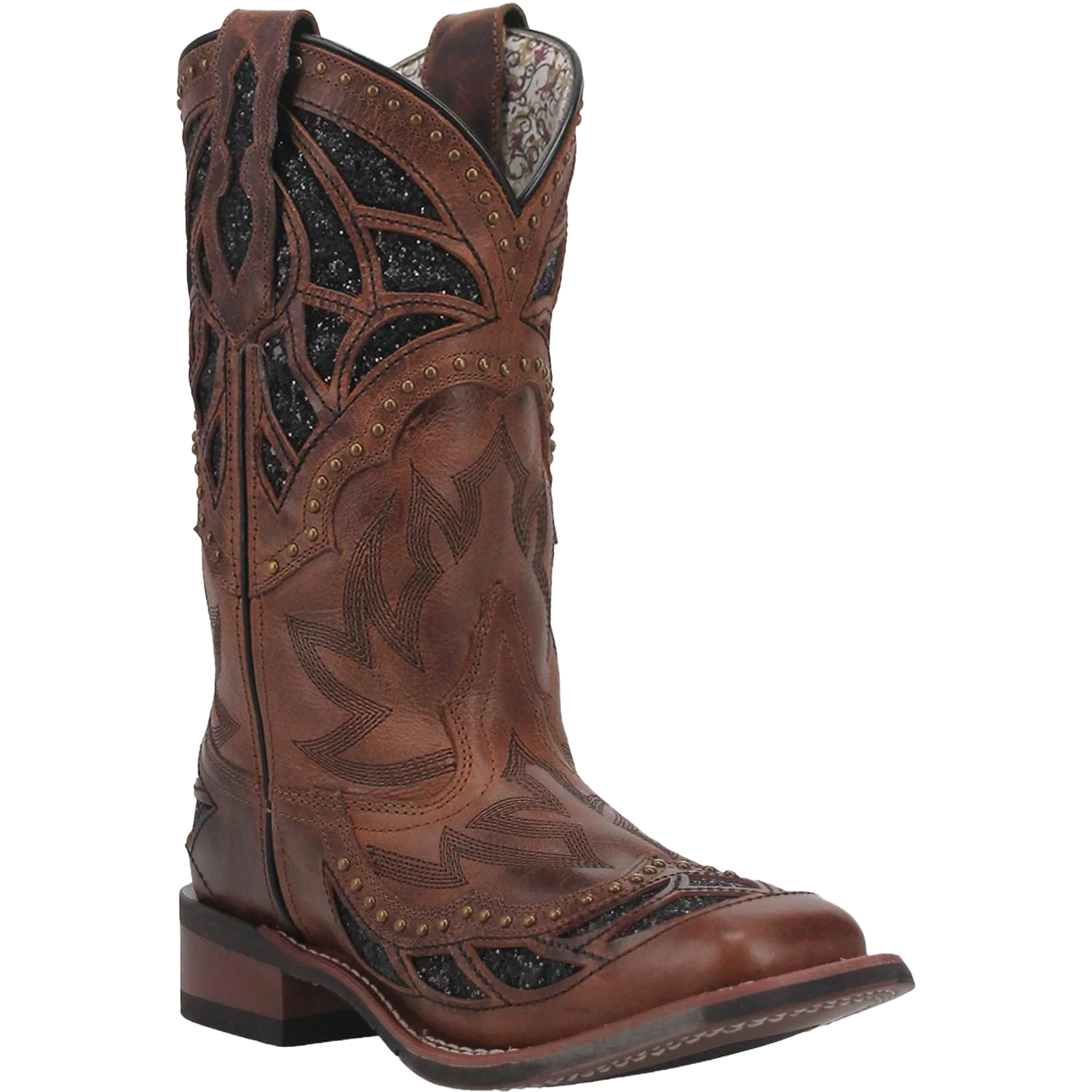 Laredo Ladies Eternity Brown Glitter & Studded Square Toe Boots 5866
